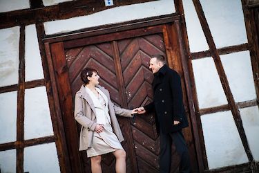 Noch kurz vor Weihnachten gaben sich Friedel & Basti das JA-Wort im neuen Standesamt in Cottbus. Der Winter zeigte sich von seiner sonnigen Seite. Und so entstanden schöne Bilder – auch beim Shooting kurz vor'm Sonnenuntergang.
